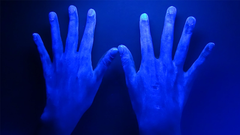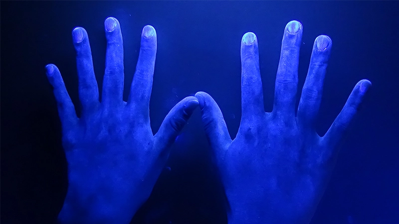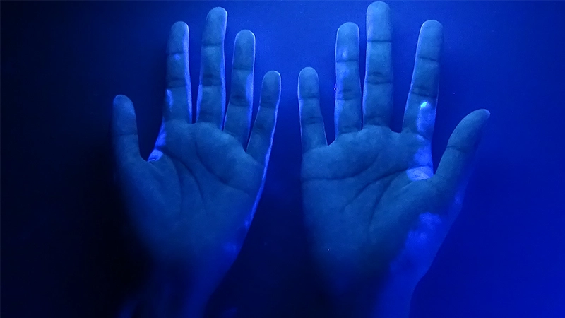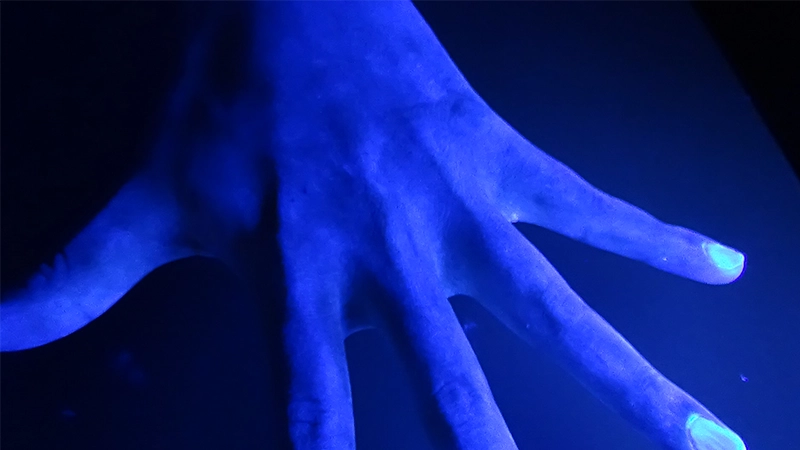 - ※ ハンドクリームが塗れた部分は青色に光ります